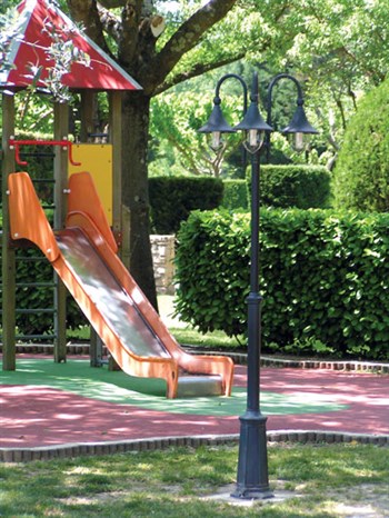 Denne Firenze lampe er en udendørs stolpelampe i smuk stil. Den har en flot, spids glaskuppel i et trompetformet lygtehoved, der er yderst dekorativ og minder om italiensk stil og elegance. Lampen kan for eksempel bruges til at give effektiv oplysning i din have, indkørsel eller andre udendørsarealer. Udover at være køn, er det et hårdført kvalitetsprodukt med glas af slagfast polykarbonat, og holder godt til vind og vejr med 10 års garanti mod korrosion fra producenten. Denne version har tre lygter monteret på en teleskopstolpe, der kan justeres i højden, og bruger tre stk. max 57W lyskilder i E27-fatninger.